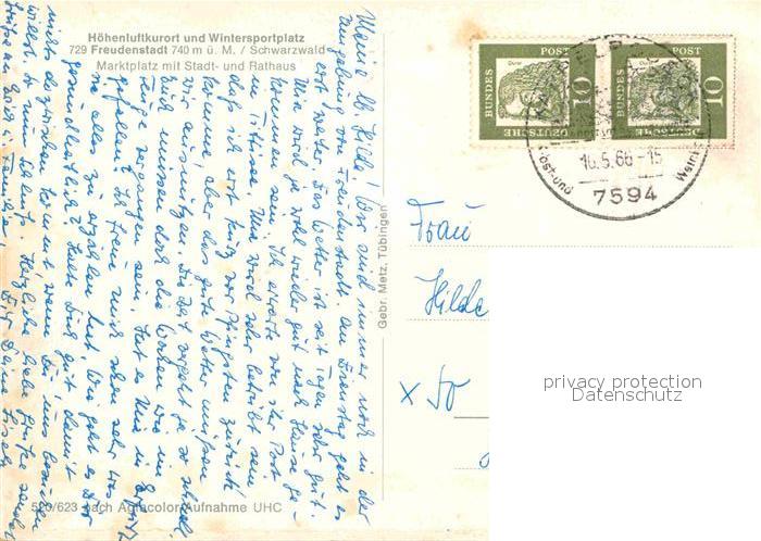 72860272 alte Postkarte FREUDENSTADT BW Marktplatz Rathaus Stadthaus postalisch gelaufen Erhaltung siehe scans [AndreD76] KatCode: 11110008237028