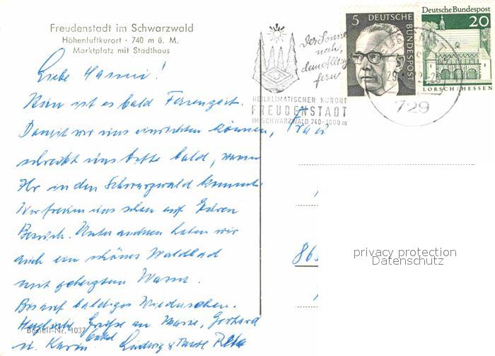 72894590 alte Postkarte FREUDENSTADT BW Marktplatz Stadthaus postalisch gelaufen Erhaltung siehe scans [KathaD81] KatCode: 11110008237028