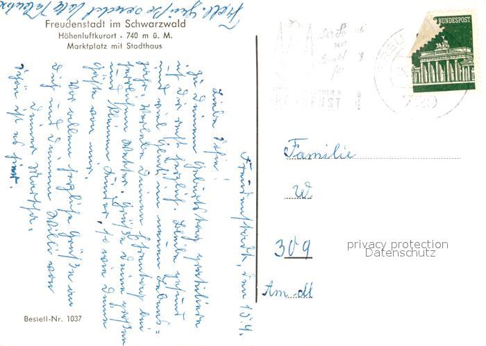 73099053 alte Postkarte FREUDENSTADT BW Marktplatz Stadthaus postalisch gelaufen Erhaltung siehe scans [KathaD81] KatCode: 11110008237028