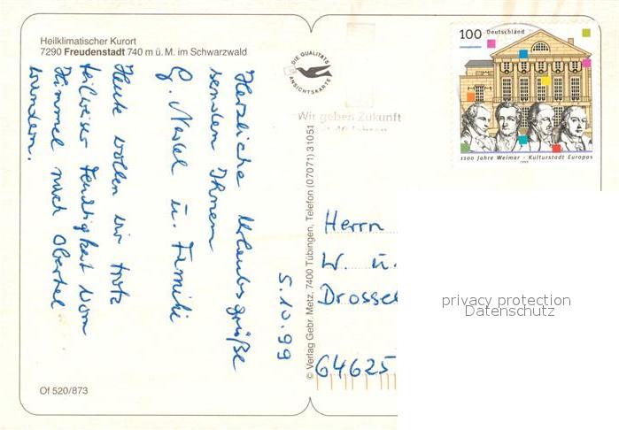 73196767 alte Postkarte FREUDENSTADT BW Marktplatz postalisch gelaufen Erhaltung siehe scans [NatalD47] KatCode: 11110008237028