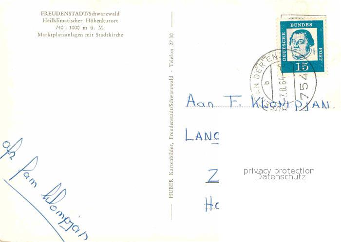 72655099 alte Postkarte FREUDENSTADT BW Marktplatzanlagen mit Stadtkirche postalisch gelaufen Erhaltung siehe scans [LiesaD40] KatCode: 11110008237028