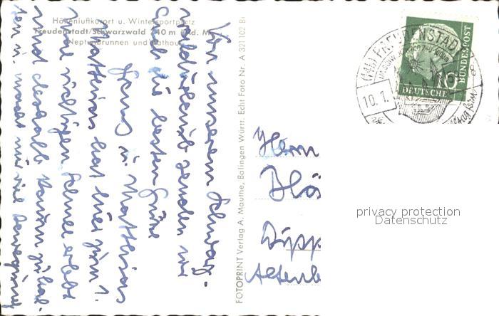 72357418 alte Postkarte FREUDENSTADT BW Neptunbrunnen mit Rathaus postalisch gelaufen Erhaltung siehe scans KatCode: 11110008237028