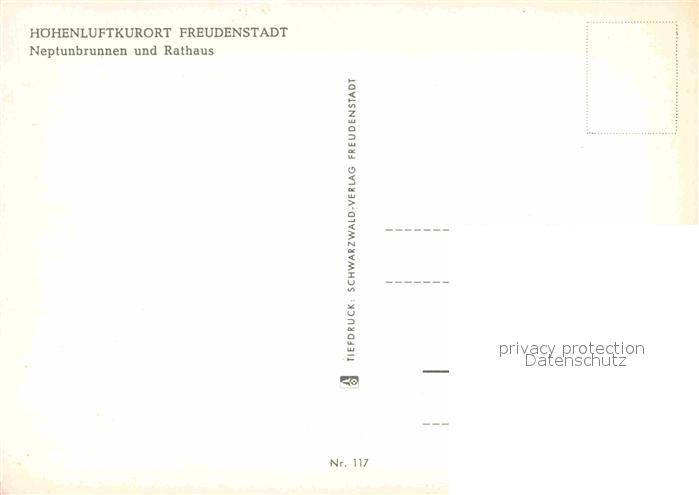 72886031 FREUDENSTADT BW Neptunbrunnen Rathaus Kurort im Schwarzwald postalisch nicht gelaufen Erhaltung siehe scans [FriedD77] KatCode: 11110008237028