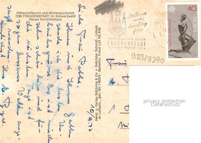 72907073 alte Postkarte FREUDENSTADT BW Neues Kurmittelhaus Luftkurort im Schwarzwald postalisch gelaufen Erhaltung siehe scans [FriedD77] KatCode: 11110008237028