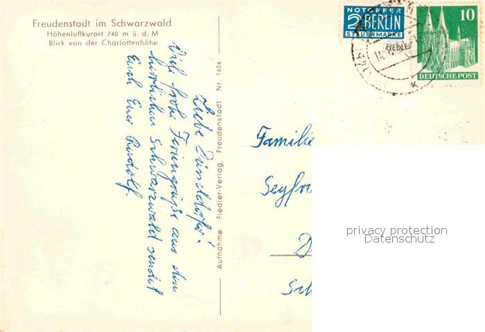 72787024 alte Postkarte FREUDENSTADT BW Panorama Blick von der Charlottenhoehe Hoehenluftkurort Schwarzwald postalisch gelaufen Erhaltung siehe scans [FriedD77] KatCode: 11110008237028