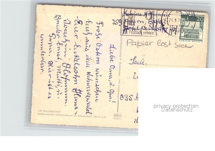72510777 alte Postkarte FREUDENSTADT BW Panorama heilklimatischer Luftkurort im Schwarzwald postalisch gelaufen Erhaltung siehe scans KatCode: 11110008237028