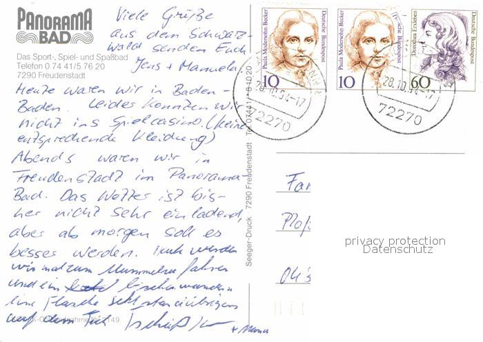 72750383 alte Postkarte FREUDENSTADT BW Panoramabad Marktplatz Brunnen Fliegeraufnahme postalisch gelaufen Erhaltung siehe scans [FriedD77] KatCode: 11110008237028