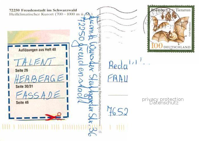 72758355 alte Postkarte FREUDENSTADT BW Parkanlagen postalisch gelaufen Erhaltung siehe scans [KathaD81] KatCode: 11110008237028