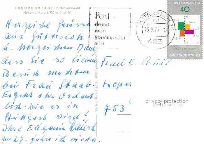 72705219 alte Postkarte FREUDENSTADT BW Rathausecke Kurgarten Evangelische Stadtkirche Marktplatz postalisch gelaufen Erhaltung siehe scans [AndreD76] KatCode: 11110008237028