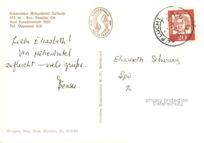 73771184 FREUDENSTADT BW Schmelzles Hoehenhotel Zuflucht Fliegeraufnahme postalisch gelaufen Erhaltung siehe scans [WerneD78] alte Postkarte Wern Katcode 11110008237028