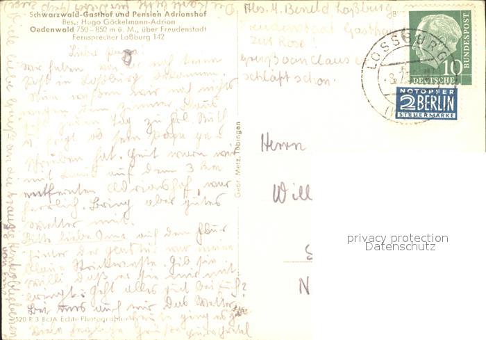 71930973 alte Postkarte FREUDENSTADT BW Schwarzwald Gasthof Adrionshof postalisch gelaufen Erhaltung siehe scans KatCode: 11110008237028