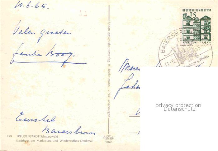 72656989 alte Postkarte FREUDENSTADT BW Stadthaus Marktplatz Wiederaufbau-Denkmal postalisch gelaufen Erhaltung siehe scans [LiesaD40] KatCode: 11110008237028