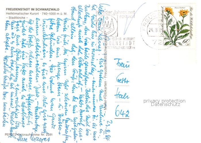 73040726 alte Postkarte FREUDENSTADT BW Stadtkirche postalisch gelaufen Erhaltung siehe scans [NatalD47] KatCode: 11110008237028