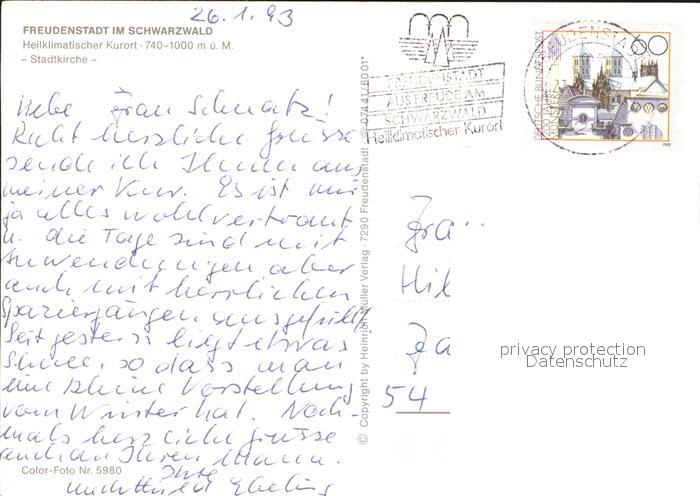 72570536 alte Postkarte FREUDENSTADT BW Stadtkirche postalisch gelaufen Erhaltung siehe scans [AndreD76] KatCode: 11110008237028