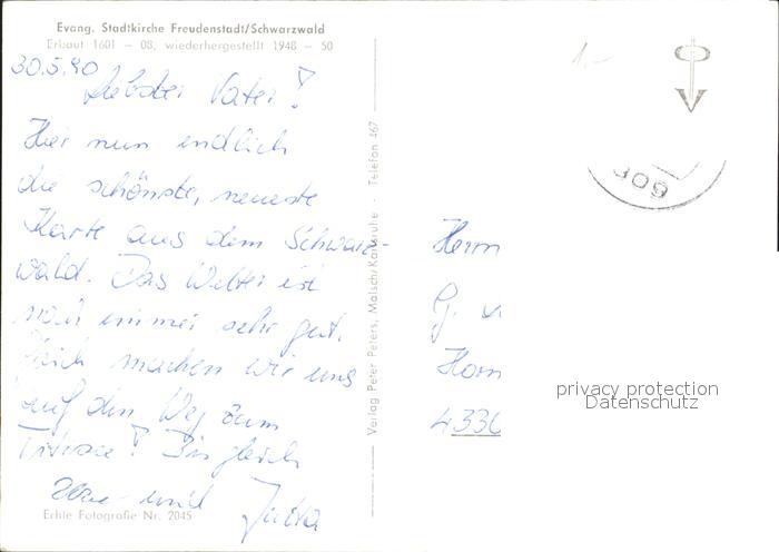 72282919 alte Postkarte FREUDENSTADT BW Stadtkirche postalisch gelaufen Erhaltung siehe scans KatCode: 11110008237028