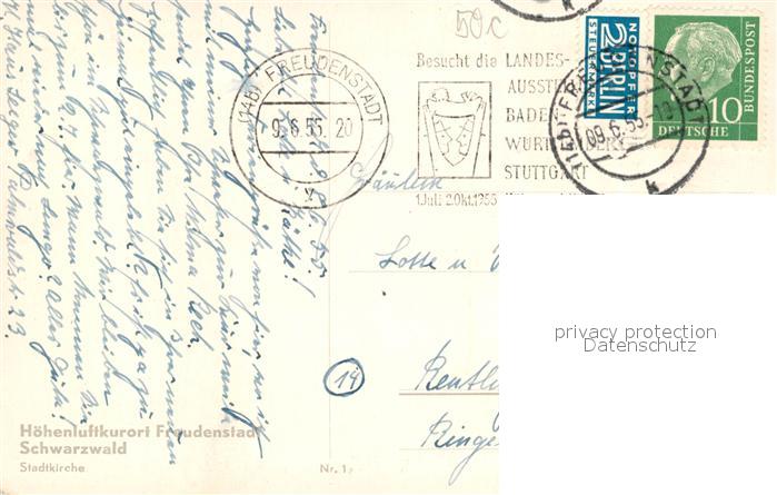 73142695 alte Postkarte FREUDENSTADT BW Stadtkirche postalisch gelaufen Erhaltung siehe scans [NatalD47] KatCode: 11110008237028