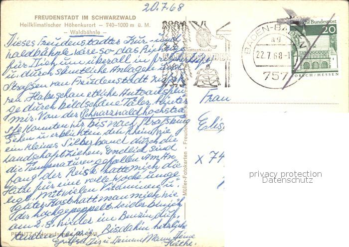 72296502 alte Postkarte FREUDENSTADT BW Waldbaehnle Heilklimatischer Hoehenkurort Schwarzwald postalisch gelaufen Erhaltung siehe scans KatCode: 11110008237028