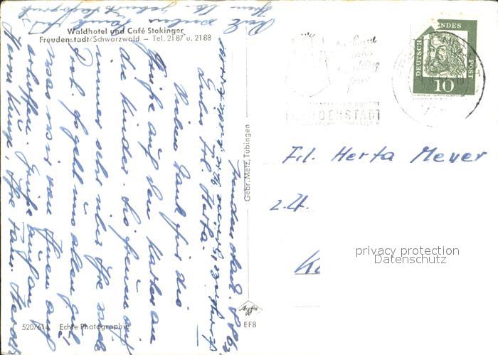 72281656 alte Postkarte FREUDENSTADT BW Waldhotel Cafe Stokinger postalisch gelaufen Erhaltung siehe scans KatCode: 11110008237028