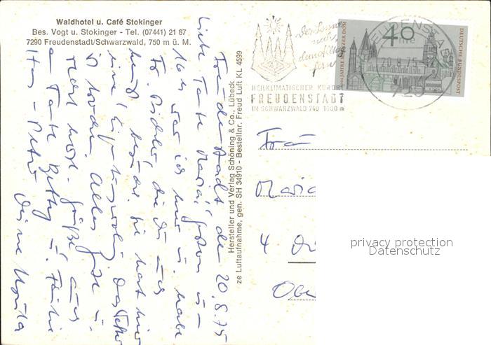 72257304 alte Postkarte FREUDENSTADT BW Waldhotel Cafe Stokinger Fliegeraufnahme postalisch gelaufen Erhaltung siehe scans KatCode: 11110008237028