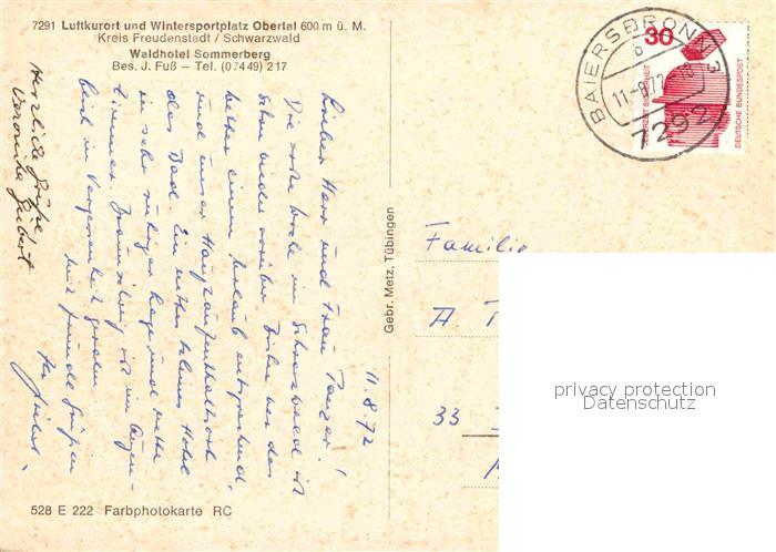 72777424 alte Postkarte FREUDENSTADT BW Waldhotel Sommerberg postalisch gelaufen Erhaltung siehe scans [KathaD81] KatCode: 11110008237028