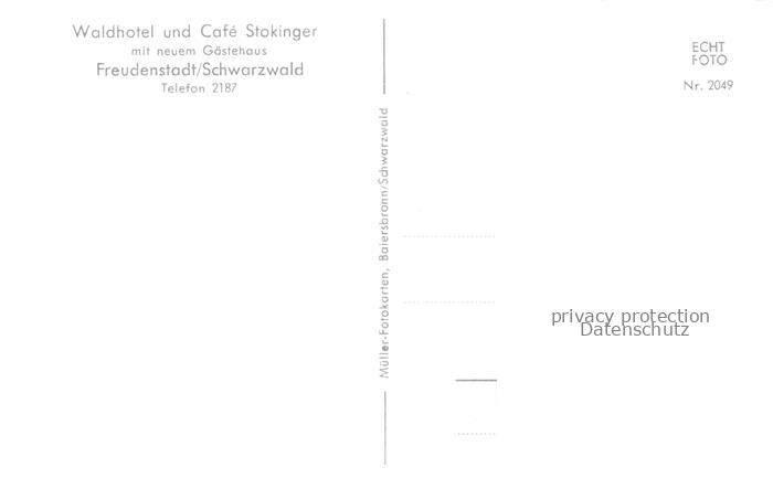 74150847 FREUDENSTADT BW Waldhotel-Stokinger Café Gaestehaus Schwarzwald Waldlichtung Tannen postalisch nicht gelaufen Erhaltung siehe scans [Karloger] KatCode: 11110008237028