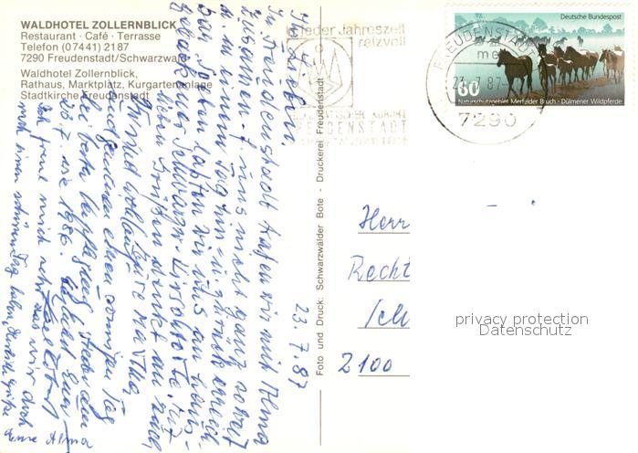 73101015 alte Postkarte FREUDENSTADT BW Waldhotel Zollernblick Rathaus Marktplatz Kurgartenanlage Stadtkirche postalisch gelaufen Erhaltung siehe scans [WerneD78] KatCode: 11110008237028