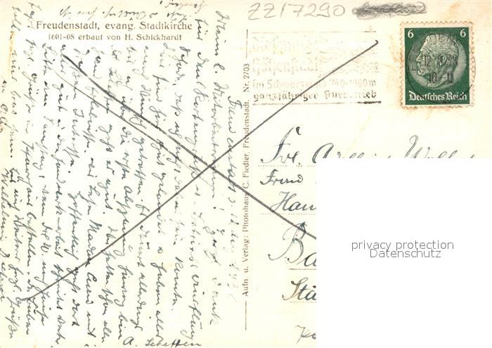 73281515 alte Postkarte Freudenstadt Evangelische Stadtkirche postalisch gelaufen Erhaltung siehe scans [NatalD47] KatCode: 11110008237028