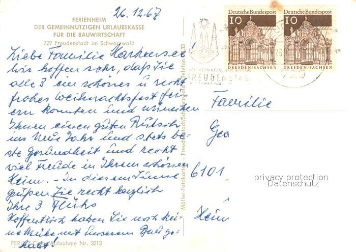 73636889 alte Postkarte Freudenstadt Ferienheim der Gemeinnuetzigen Urlaubskasse fuer die Bauwirtschaft Winterlandschaft Schwarzwald postalisch gelaufen Erhaltung siehe scans [FriedD77] KatCode: 11110008237028