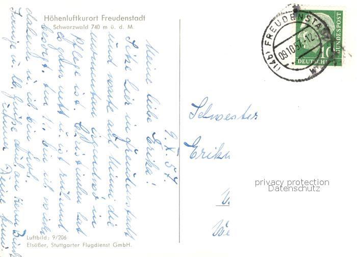 33250666 alte Postkarte Freudenstadt Fliegeraufnahme postalisch gelaufen Erhaltung siehe scans [NatalD47] KatCode: 11110008237028