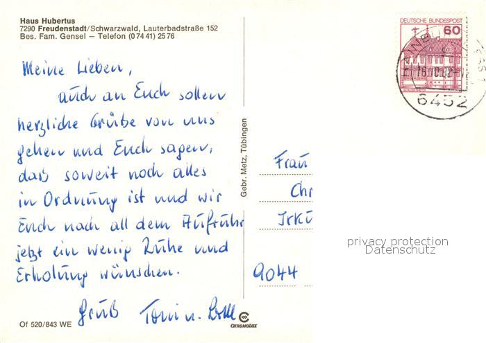 73324261 alte Postkarte Freudenstadt Gaestehaus Pension Haus Hubertus Landschaftspanorama Luftkurort Schwarzwald postalisch gelaufen Erhaltung siehe scans [FriedD77] KatCode: 11110008237028