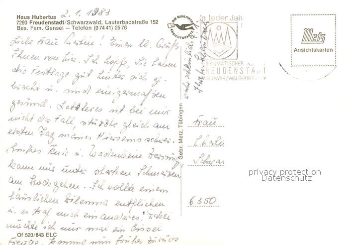 73244111 alte Postkarte Freudenstadt Haus Hubertus postalisch gelaufen Erhaltung siehe scans [LiesaD40] KatCode: 11110008237028
