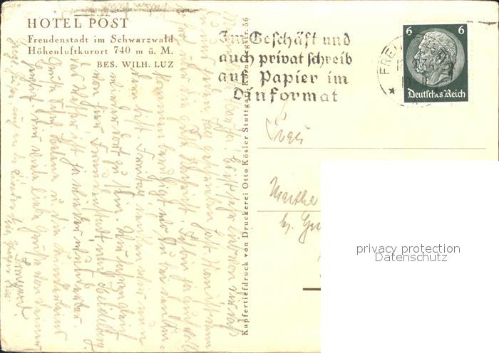 31715247 alte Postkarte Freudenstadt Hotel Post Autos postalisch gelaufen Erhaltung siehe scans KatCode: 11110008237028