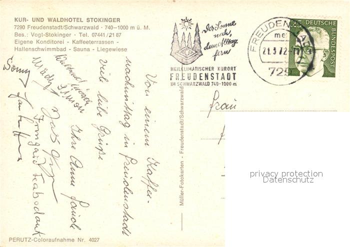 73248943 alte Postkarte Freudenstadt Kur- und Waldhotel Stokinger postalisch gelaufen Erhaltung siehe scans [FriedD77] KatCode: 11110008237028
