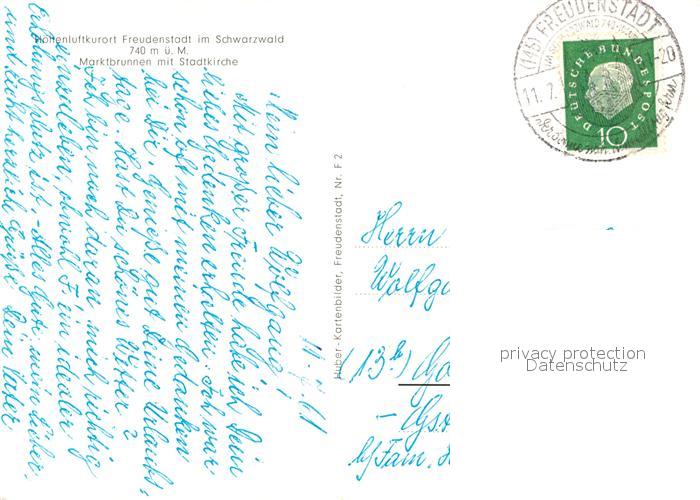 73271726 alte Postkarte Freudenstadt Marktbrunnen Stadtkirche postalisch gelaufen Erhaltung siehe scans [KathaD81] KatCode: 11110008237028