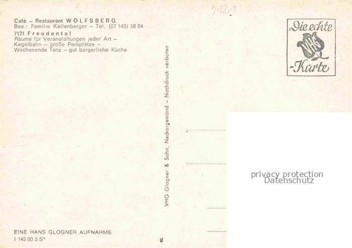 74054226 Freudental Ludwigsburg Café Restaurant Wolfsberg Gastraum Terrasse Kamin postalisch nicht gelaufen Erhaltung siehe scans [FriedD77] KatCode: 11110008118016