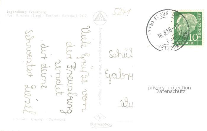 73560621 alte Postkarte Freusburg Jugendburg postalisch gelaufen Erhaltung siehe scans [KathaD81] KatCode: 11110007132063