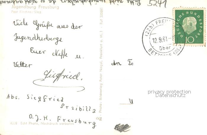 73706219 alte Postkarte Freusburg Jugendburg postalisch gelaufen Erhaltung siehe scans [LiesaD40] KatCode: 11110007132063