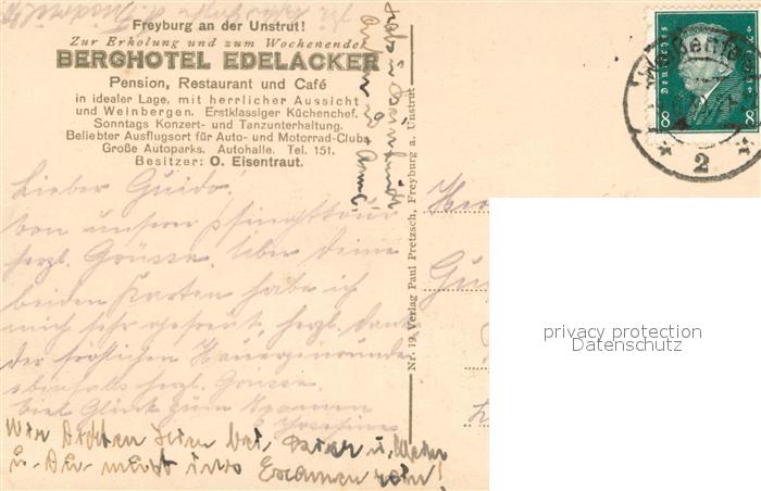 73745787 alte Postkarte Freyburg Unstrut Blick vom Schluefter Gesamtansicht postalisch gelaufen Erhaltung siehe scans [LiesaD40] KatCode: 11110015084135