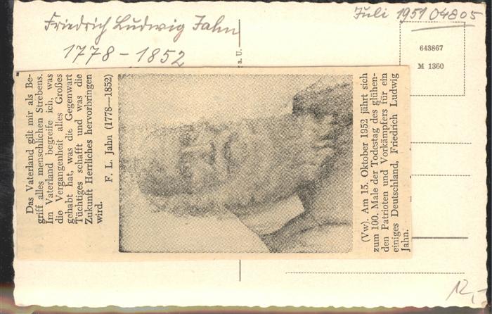 41421827 Freyburg Unstrut Friedrich Ludiwg Jahn KatCode 11110015084135