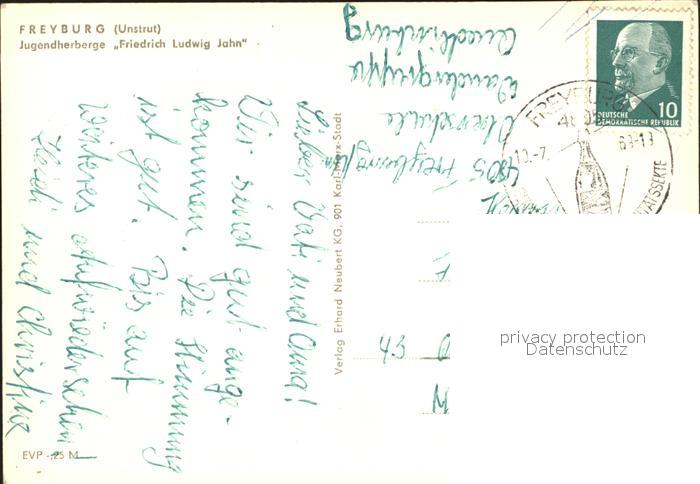 72040245 alte Postkarte Freyburg Unstrut Jugendherberge Friedrich Ludwig Jahn postalisch gelaufen Erhaltung siehe scans KatCode: 11110015084135