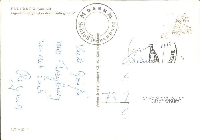 71996252 alte Postkarte Freyburg Unstrut Jugendherberge Friedrich Ludwig Jahn postalisch gelaufen Erhaltung siehe scans KatCode: 11110015084135