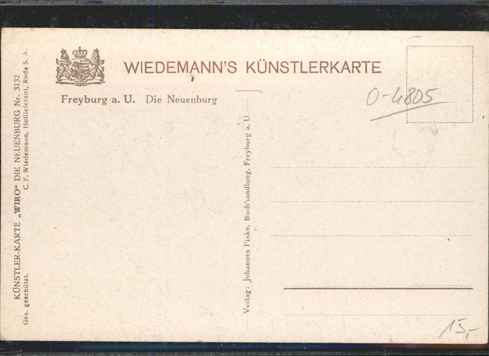 41421749 Freyburg Unstrut Künstlerkarte Neuenburg Wiedemanns KatCode 11110015084135