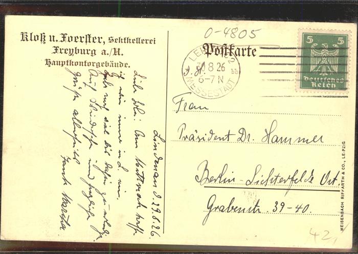 41421819 Freyburg Unstrut Sektkellerei Hauptkontorgebäude KatCode 11110015084135