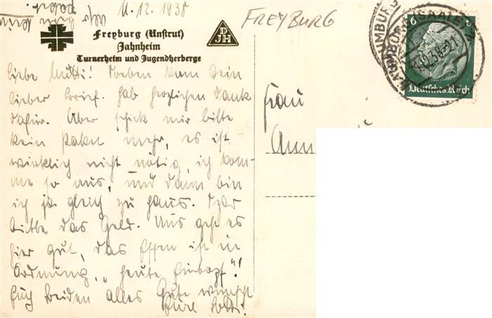 73939636 alte Postkarte Freyburg Unstrut Turnerheim und Jugendherberge Jahnheim postalisch gelaufen Erhaltung siehe scans [FriedD77] KatCode: 11110015084135