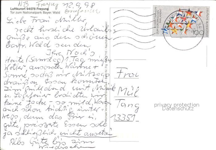 72054731 alte Postkarte Freyung postalisch gelaufen Erhaltung siehe scans KatCode: 11110009272118