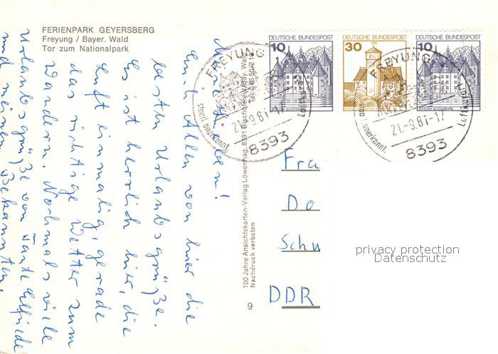 73008806 alte Postkarte Freyung Appartement Hotels Ferienpark Geyersberg postalisch gelaufen Erhaltung siehe scans [WerneD78] KatCode: 11110009272118