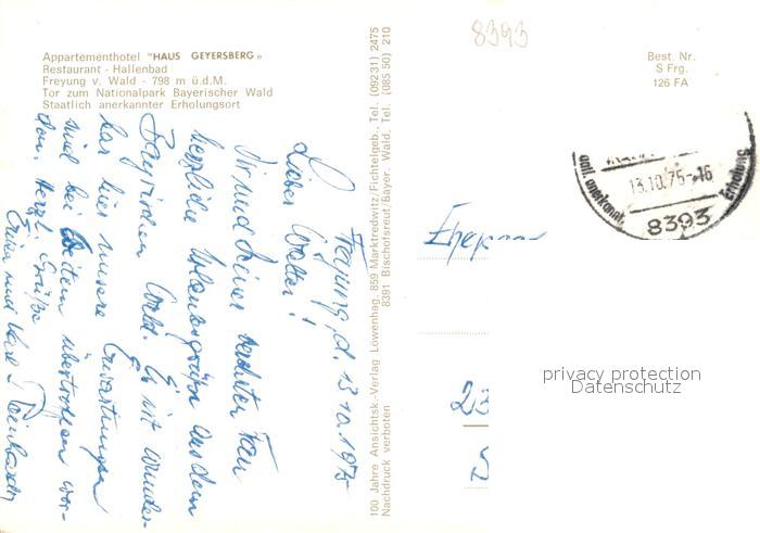 73164273 alte Postkarte Freyung Appartementhotel Haus Geyersberg postalisch gelaufen Erhaltung siehe scans [FriedD77] KatCode: 11110009272118