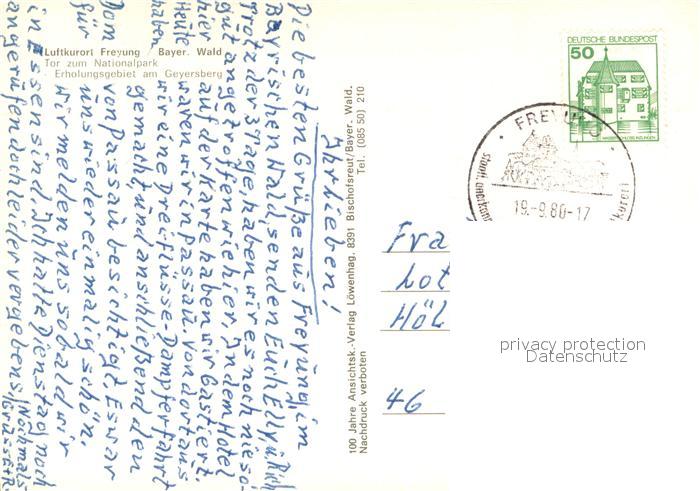 73688537 alte Postkarte Freyung Erholungsgebiet am Geyersberg postalisch gelaufen Erhaltung siehe scans [WerneD78] KatCode: 11110009272118