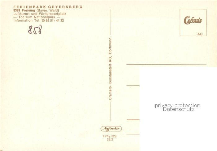 73752525 Freyung Ferienpark Geyersberg Fliegeraufnahme postalisch nicht gelaufen Erhaltung siehe scans [WerneD78] KatCode: 11110009272118