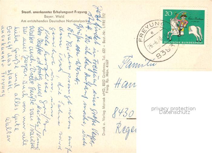 73580673 alte Postkarte Freyung Fliegeraufnahme postalisch gelaufen Erhaltung siehe scans [KathaD81] KatCode: 11110009272118